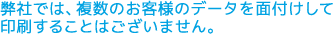弊社では、複数のお客様のデータを面付けして印刷することはございません。